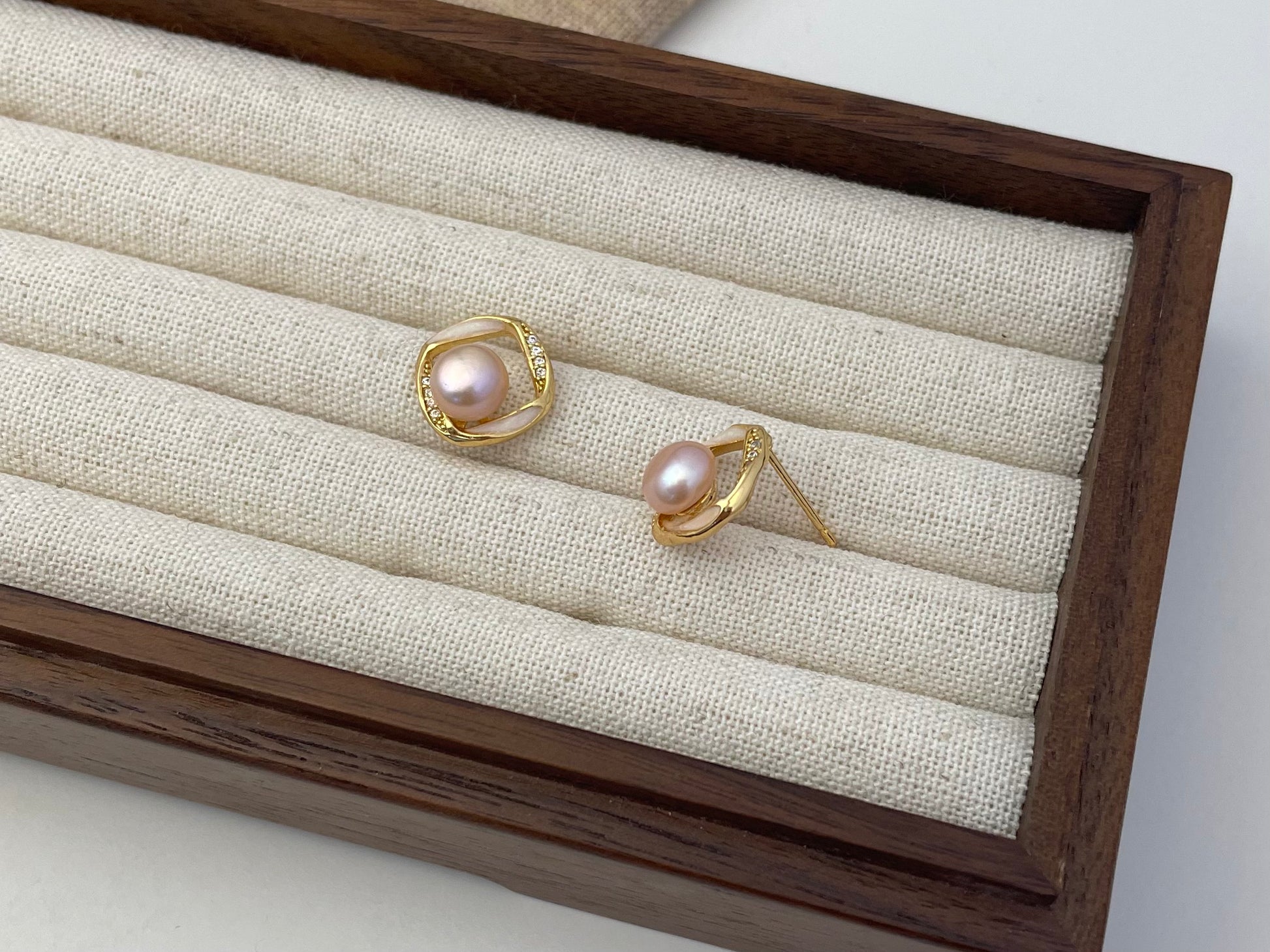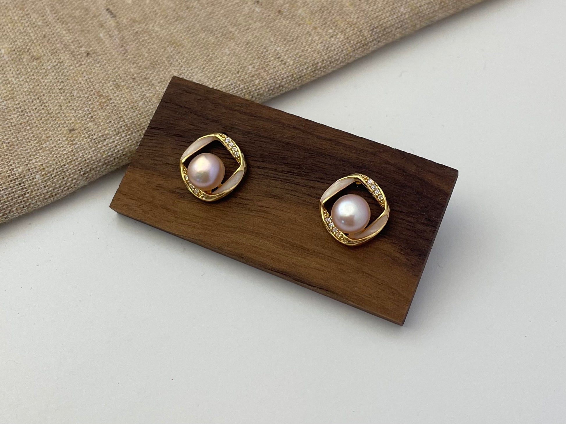 Earring 84 | Geometric Pink Pearl Stud Earrings