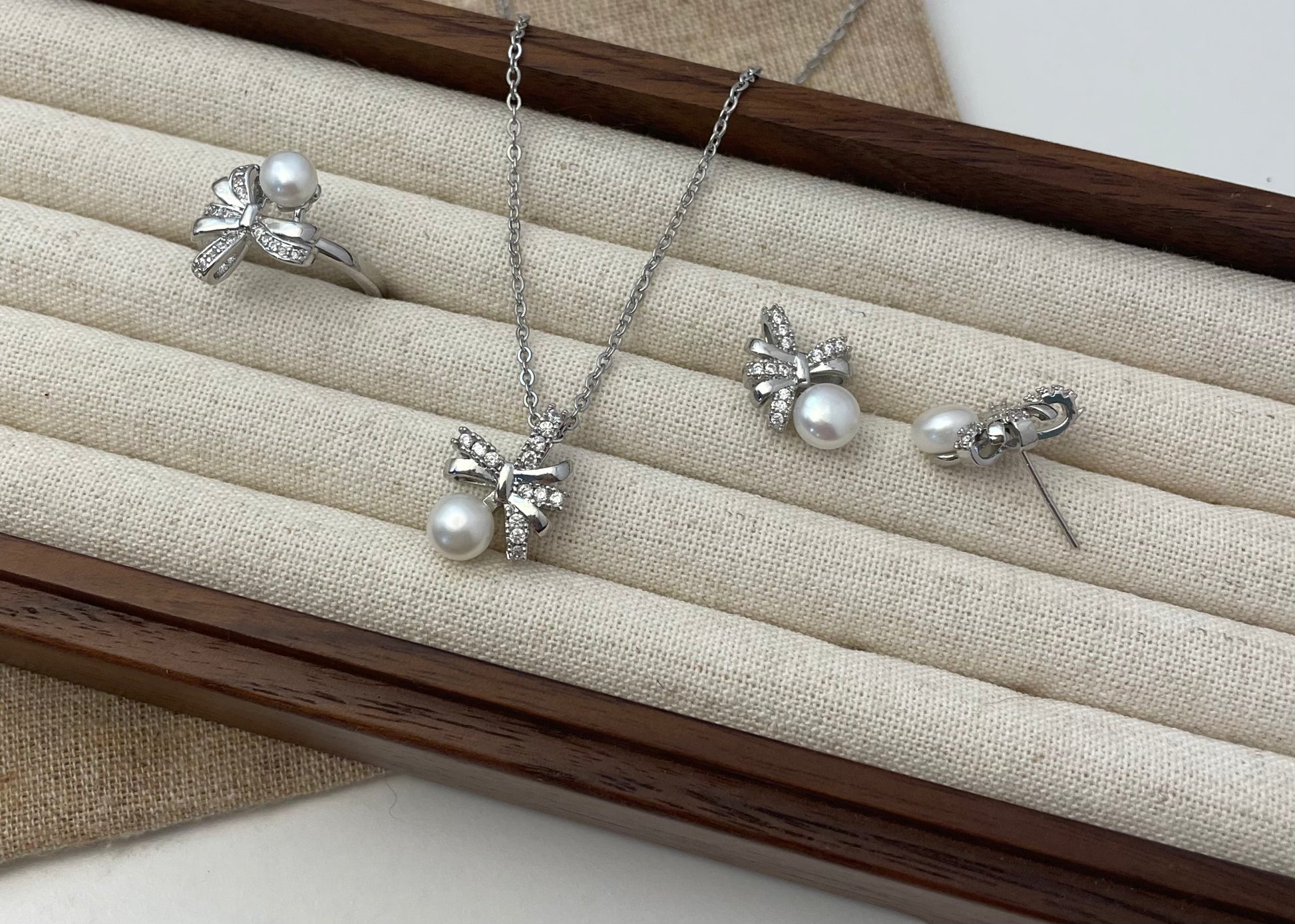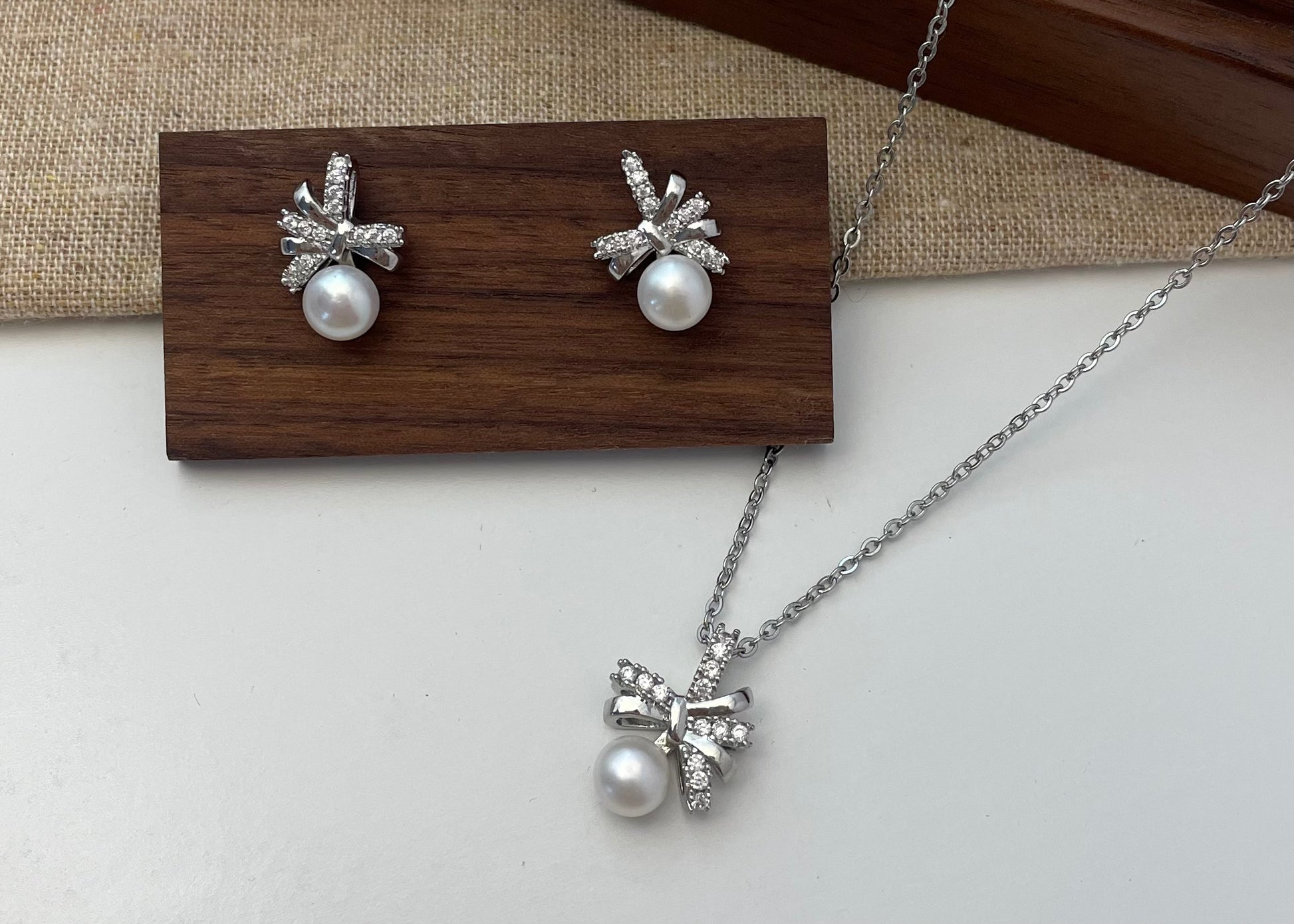 Set 39 | Silver Ribbon with White Pearl Jewellery Set